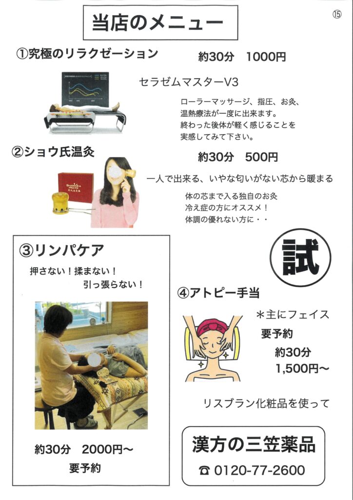 三笠薬品のメニュー